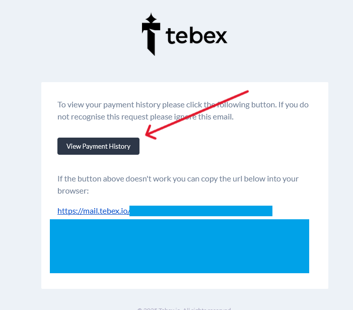 Log into your email – if the email you entered has been used on the tebex store system, you will receive a login code. Click the View Payment History button within the email message – in order to continue the process.