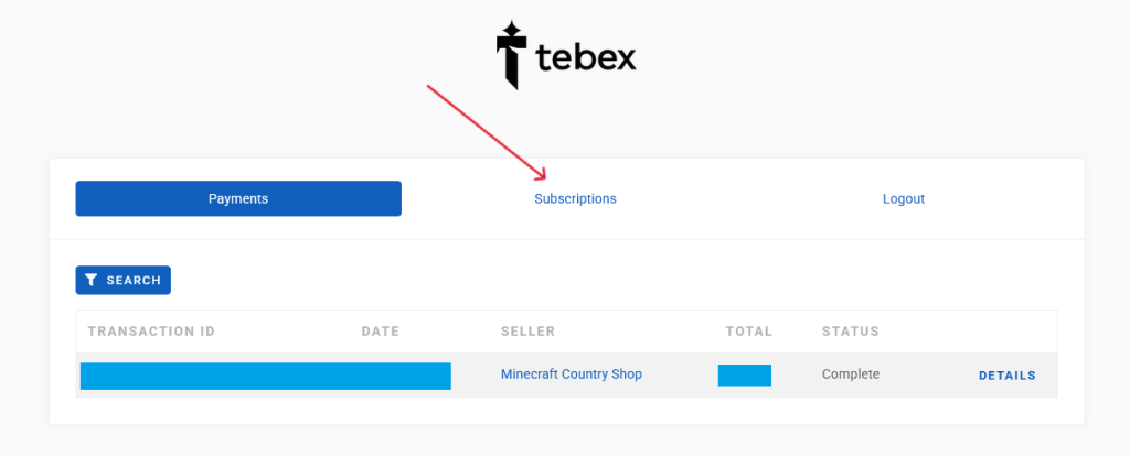 Once you arrive on the page, you should see a payment transaction history. Look along the top bar of the page and click the subscriptions link.